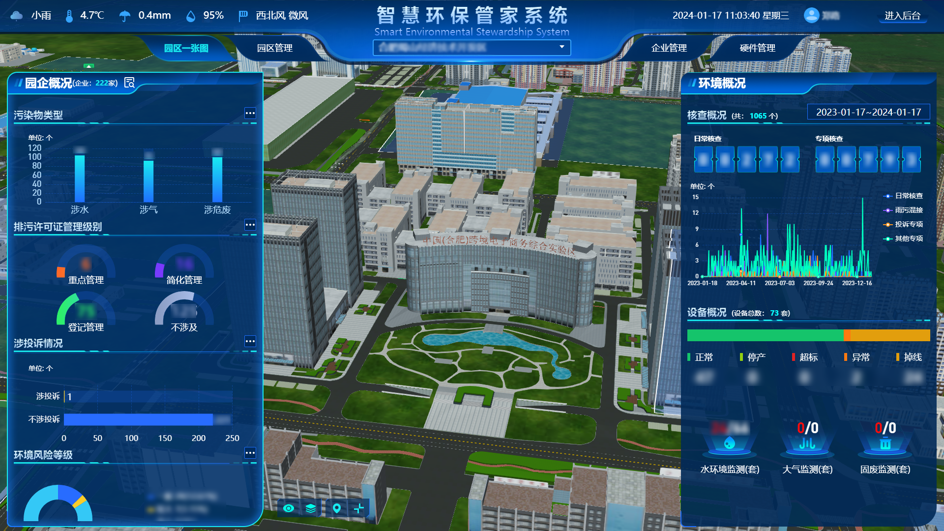 此業(yè)務(wù)板塊包括:結(jié)合《安徽省“十四五”生態(tài)環(huán)境保護(hù)規(guī)劃》、《安徽省“十四五”生態(tài)環(huán)境保護(hù)規(guī)劃》,推動建立面向中小企業(yè)線上線下環(huán)保綜合服務(wù)平臺、構(gòu)建智慧高效的生態(tài)環(huán)境管理信息化體系。 現(xiàn)自主研發(fā)產(chǎn)品包括智慧園區(qū)平臺、工業(yè)污水處理數(shù)字化監(jiān)管平臺、數(shù)字孿生流域防洪系統(tǒng)、小微企業(yè)危險(xiǎn)廢物管理平臺等。